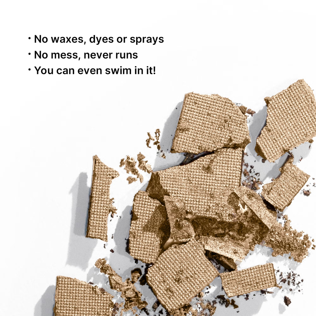 Apply to dry hair. Load up small end of brush with powder. Use free hand to pull hair flat/taut against head and press brush down firmly into roots, starting from scalp and working out – do not use sweeping motion. Apply more powder as needed. To extend highlights, use side edge of small brush. Lightly dust off any excess powder with wide end of brush.